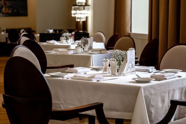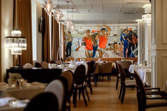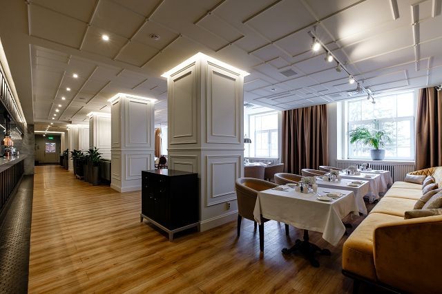 Ресторан «Дубровин» гордо носит имя архитектора отеля Центральный. Белые колонны, резные зеркала, хрустальные люстры – строго, но при этом свежо и уютно.